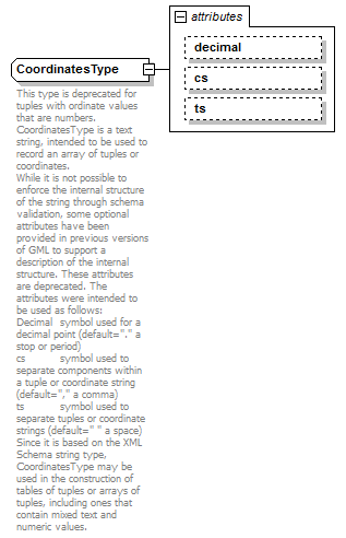 While it is not possible to enforce the internal structure of the string through schema validation, some optional attributes have been provided in previous versions of GML to support a description of the internal structure. These attributes are deprecated. The attributes were intended to be used as follows: