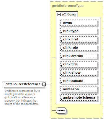 | documentation | | Evidence is represented by a simple gml:dataSource or gml:dataSourceReference property that indicates the source of the temporal data. |